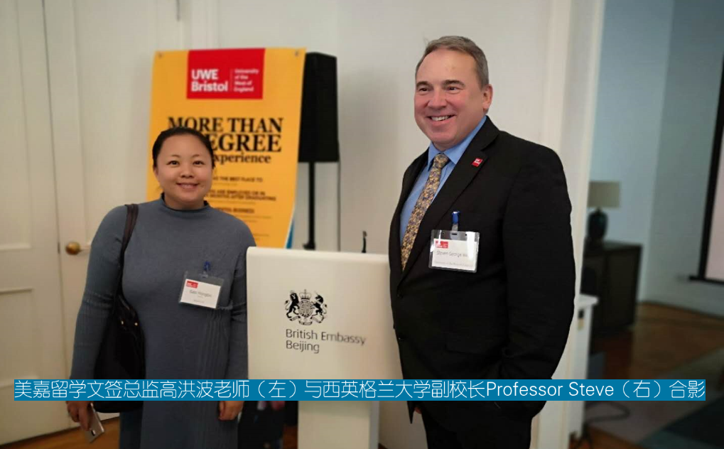 美嘉留学受邀参加西英格兰大学北京英国大使馆官邸举行的西英校长见面会活动。